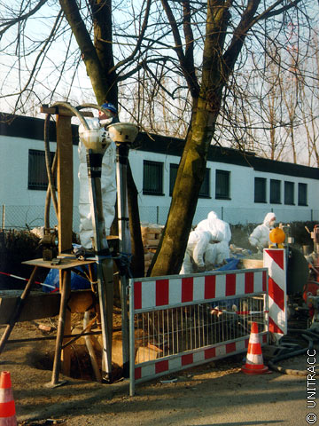 Arbeitsschritte beim Noppenschlauchverfahren - Mischen des Injektionsmörtels [Quelle: STEIN Ingenieure GmbH] |