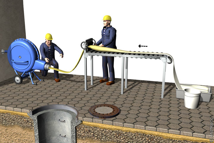 Der Einbau des Inlinerschlauches erfolgt im Umstülpverfahren mit Druckluft (Image 5.3.2.4.1.3.4-1) (Image 5.3.2.4.1.3.4-2) (Image 5.3.2.4.1.3.4-3) (Image 5.3.2.4.1.3.4-4) (Image 5.3.2.4.1.3.4-6) (Image 5.3.2.4.1.3.4-7) (Image 5.3.2.4.1.3.4-8) (Video 5.3.2.4.1.3.4-1) .