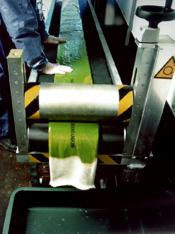 Brawoliner-Verfahren [FI-Braun] - Einwalzen des Epoxidharzes mit Hilfe einer mobilen Harzimprägnieranlage |
