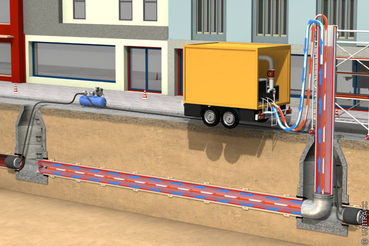 KM-Inliner-Verfahren [FI-KMG] - Einziehen des Trägerschlauches aus dem Kühlwagen |