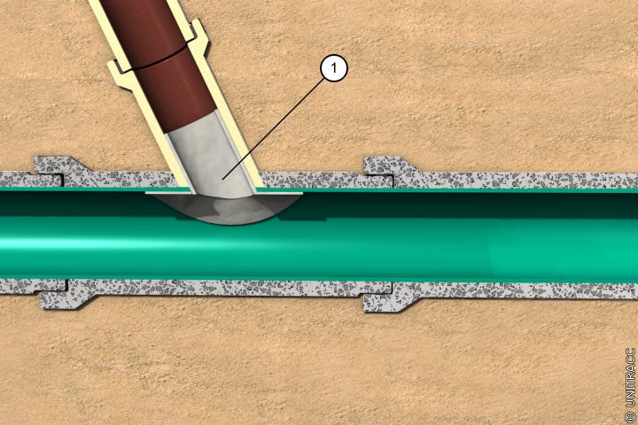 Nach erfolgter Auskleidung des Kanals werden die Anschlußkanäle mit dem Schneidgerät anhand der gespeicherten Daten angefahren und geöffnet [FI-Rausc] [FI-Isekib] .