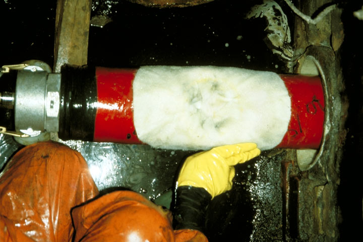 Als Hutmanschette wird beim Insituform-Verfahren ein ca. 40-45 cm langer, epoxidharzgetränkter Filzschlauch mit Krempe verwendet (Image 5.3.2.4.1.1.1.5-2) (Image 5.3.2.4.1.1.1.5-3) (Image 5.3.2.4.1.1.1.5-4) (Image 5.3.2.4.1.1.1.5-5) (Image 5.3.2.4.1.1.1.5-6).