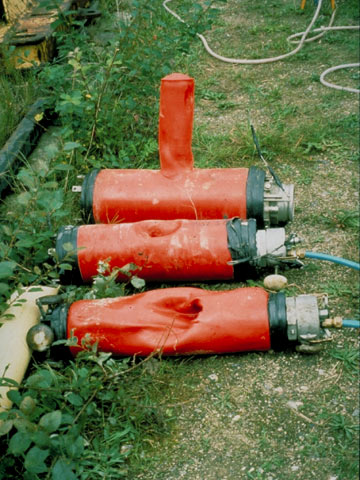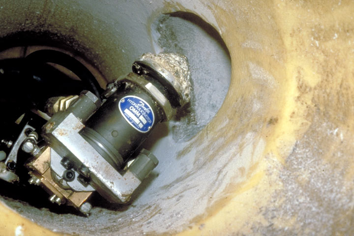 Im vorliegenden Anwendungsfall bietet sich die geschlossene Bauweise besonders an, da der Einbindungsbereich von innen relativ leicht erkennbar ist. In diesem Bereich beult sich der Inliner nach außen etwas aus, so daß die speziell entwickelten Bohr-, Schneid- und Fräsgeräte (Image 5.3.2.4.1.1.1.5-1) , aber auch die im (Abschnitt 5.2.1.6) erläuterten Roboter mittels einer Kanalfernsehkamera exakt positioniert werden können [Gale82] .