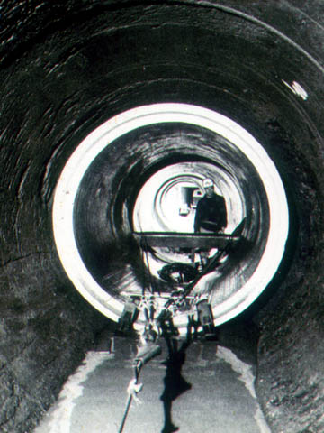 Rohrzuggeräte für den begehbaren Nennweitenbereich - Einziehen eines auf Gleitkufen gelagerten Rohres [Lenz97] |
