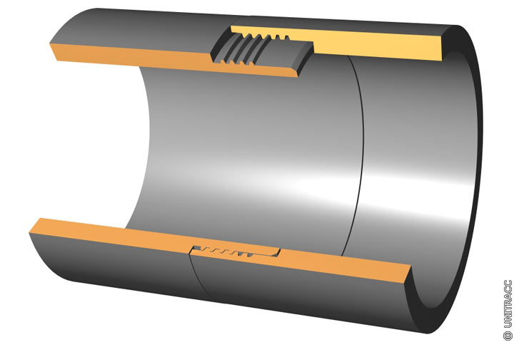 Auskleidung mit Lang- oder Kurzrohren: Ausbildung der Rohrverbindungen - Snap-Lock -Rohrverbindung in Anlehnung an [FI-Demco] [Willi83] [Quelle: STEIN Ingenieure GmbH] |