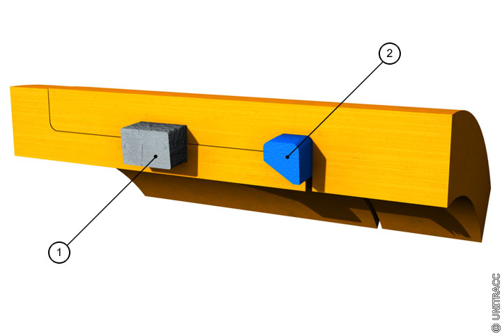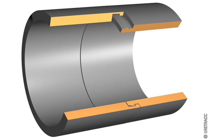 Ein Beispiel einer Rohrverbindung mit Längskraftschlüssigkeit, realisiert mit Hilfe eines seitlich tangential eingeschobenen Verriegelungsstabes, zeigen (Image 5.3.2.2.2.2-10) und (Bild 5.3.2.2.2.2) .