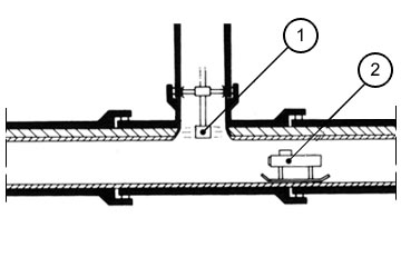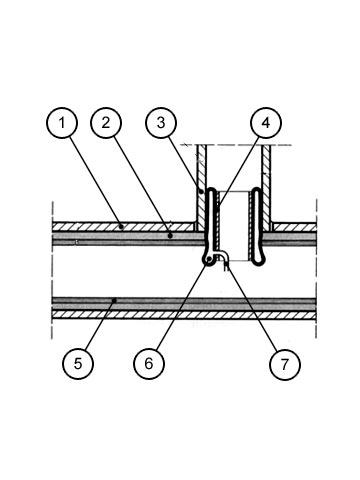 Das "Duraton-System" [Gale82] ist konzipiert für Leitungen ohne Ringraumverfüllung. Der Inliner wird hierbei nur im Anschlußbereich mit einer Polyurethaninjektion des Ringraumes fixiert. Dies erfolgt über einen Packer mit Injektionsöffnungen, der über den Anschlußkanal eingeführt und positioniert wird (Image 5.3.2.2.1.1.5.3-12) . Danach wird die Anschlußöffnung hergestellt (Image 5.3.2.2.1.1.5.3-12) .