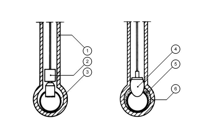 Eine andere, weniger gebräuchliche Vorgehensweise, die sowohl im begehbaren als auch im nichtbegehbaren Nennweitenbereich praktikabel ist, besteht darin, zunächst das Lining-Rohr zu öffnen, einen Packer im Übergangsbereich zu positionieren und anschließend den Ringraum zu verfüllen. Der Packer kann auch als Ringpacker (Image 5.3.2.2.1.1.5.3-7) ausgeführt werden, um den Anschlußkanal möglichst frühzeitig wieder in Betrieb setzen zu können.