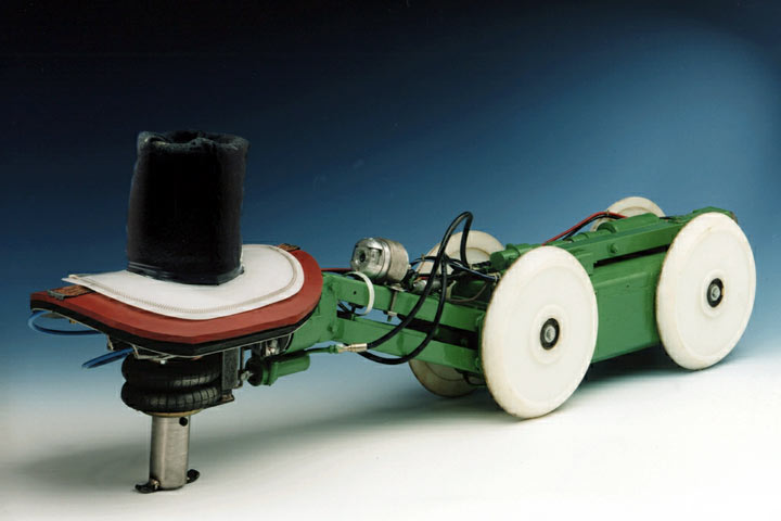Für die Herstellung der Bohrung im Inliner wurde in Großbritannien ein fernsteuerbares, über Packer im Anschlußkanal verspannbares Bohrgerät, der sogenannte "Kenmole" entwickelt und patentiert [FI-Kenne] [Gale82] .