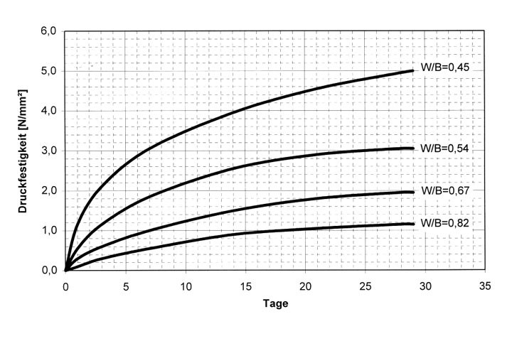 - Mindestdruckfestigkeit nach 28 Tagen: 2,0 bis 6,0 N/mm2