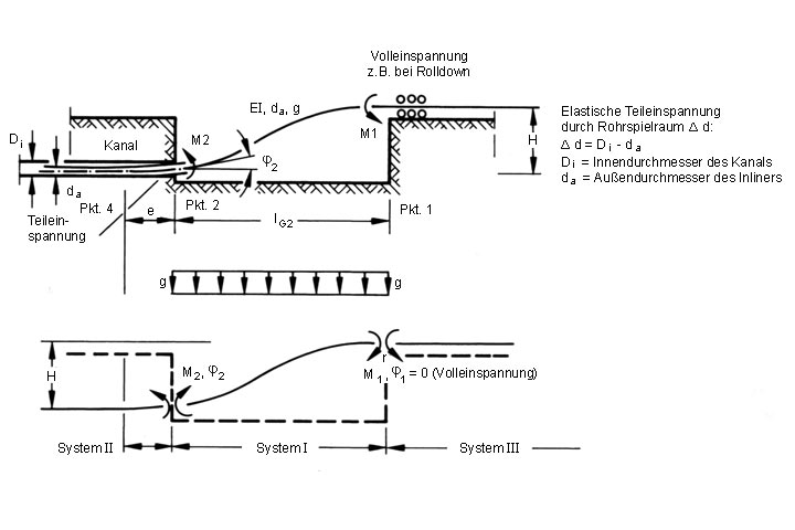 Die o.a. Gleichungen zur Berechnung der Einziehbaugrubenlänge basieren auf der idealisierten Annahme einer Volleinspannung des Rohrstranges an der Einmündungsstelle des zu sanierenden Kanals.