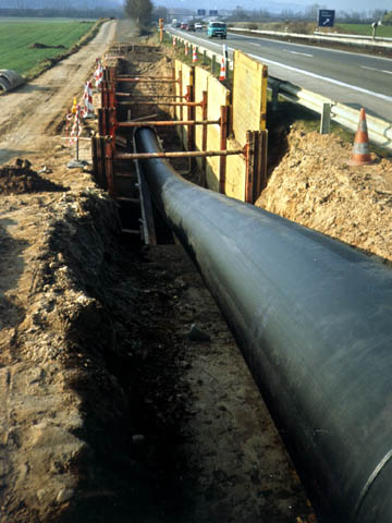 Konventionelles Rohrstrangverfahren mit Ringraum [FI-Teerb] - Blick auf eine Einziehbaugrube mit Rohrstrang |