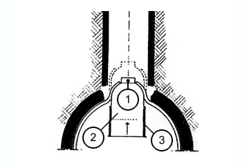 Wiederherstellung der Einbindung von Anschlußkanälen durch direkte thermo-mechanische Anformung des ohne Ringraum verlegten PE-HD-Inliners [ElKha94] - Formung des Einbindungsbereiches mit Hilfe eines Formkörpers |