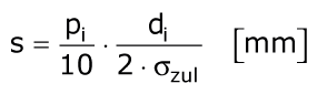 Bei gegebenem Innendurchmesser di und Innendruck pi gilt für die Berechnung der Wanddicke mit einer konstant angenommenen Spannungsverteilung, d.h. unter Vernachlässigung einer Dickwandigkeit: