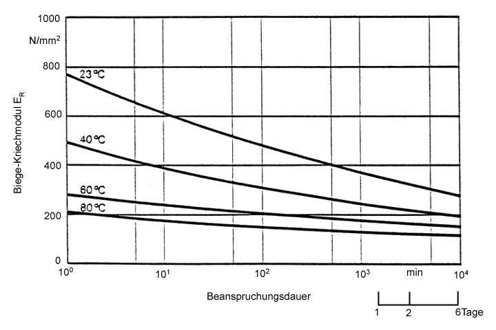 Biege-Kriechmodule ER [FI-Hoech] [Koch85] - Biege-Kriechmodul ER von PE-HD (Hostalen GM 5010 T2) s = 2 N/mm2 |