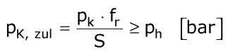 Im allgemeinen ist der 1-h-Beuldruck in Abhängigkeit vom Erstarrungszeitpunkt des Dämmers maßgebend. Sofern das Rohr durch den Auftrieb verformt wird, reduziert sich der Beuldruck um einen von der Verformung abhängigen Faktor fr (Image 5.3.2.6.3.2.2-4) . Für den zulässigen Beuldruck und damit Fülldruck gilt: