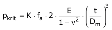 Der Ansatz der American Society for Testing and Materials F 1216-93 [ASTMF121693] zur Berechnung des kritischen Beuldruckes geht auf Versuche an Schlauch-Inlinern in Stahlrohren zurück, bei denen der Durchmesser, die Wanddicke und der Elastizitätsmodul variiert wurden. Die Inliner wurden bis zum Versagen beansprucht und der Versuchsbeuldruck mit dem kritischen Beuldruck des freien Rohres nach Timoshenko (5-6) (Formel 5.3.2.6.1.2.1) über einen Steigerungsfaktor K (Stützfaktor) verglichen. Die Berechnungsformel zur Bestimmung des kritischen Beuldruckes pkrit nach [ASTMF121693] lautet: