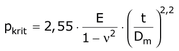 Cheney [Chene71] untersuchte wie Glock das Beulverhalten eines von einer starren Ummantelung umschlossenen Ringes unter Außendruck unter der Voraussetzung linear elastischen Werkstoffverhaltens. Seine Analyse erfolgte in Anlehnung an die Stabilitätstheorie des Bogenträgers [Timos61] [Guice94c] . Für kleine Verhältnisse t/Dm ergibt sich der kritische Beuldruck demnach zu: