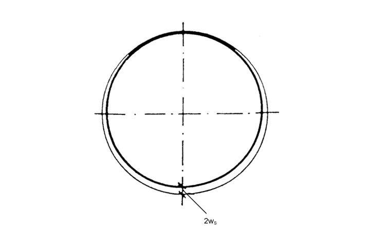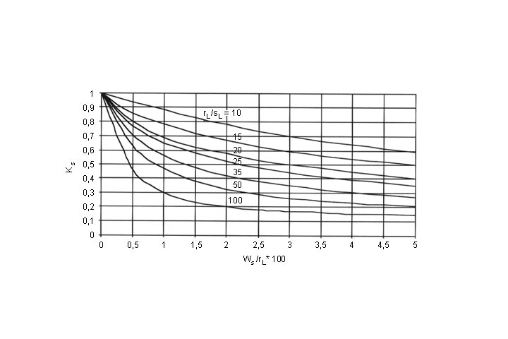 Der Spalt ist definiert als konstanter Abstand ws zwischen Inlineraußen- und Altrohrinnenwandung (Image 5.3.2.6.1.2.7-1) . Dadurch verringert sich die aufnehmbare Last des Inliners. Die Abminderung der maximal aufnehmbaren Last des Inliners ist vom Radius-/ Wanddickenverhältnis rL /sL des Inliners abhängig und wird im Stabilitätsnachweis durch die Abminderungsfaktoren κv und κs berücksichtigt (Image 5.3.2.6.1.2.7-2) (Image 5.3.2.6.1.2.7-3) .