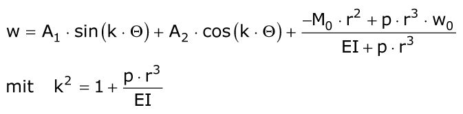 Das Biegemoment M an einer beliebigen Stelle des Kreisringes kann dann aus den Gleichgewichtsbedingungen und geometrischen Zusammenhängen wie folgt abgeleitet werden: