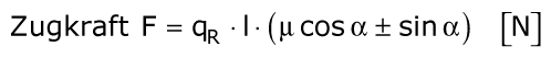μ = Reibungskoeffizient (je nach Untergrund bis 0,8) [-]