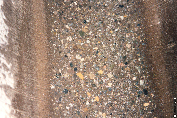 Kipprinnenversuch nach DIN 19565 [DIN19565a] [Quelle: STEIN Ingenieure GmbH] - Oberfläche eines Betonrohres nach 100000 Lastwechseln |