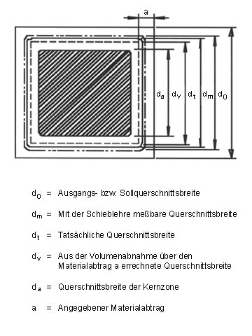 Im Fall des Salpetersäureangriffs stellt der angegebene Materialabtrag somit eine äquivalente Schichtdicke für den Materialverlust dar, der in der äußeren Schicht einer Probe aufgrund der vorauseilenden Schädigung auftritt.