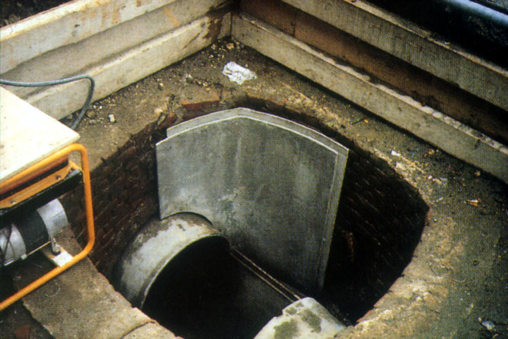 Die für Vollauskleidungen von Kanälen eingesetzten Montageverfahren (Abschnitt 5.3.2.5) sind prinzipiell auch auf die Auskleidung von Einsteigschächten und Bauwerken der Ortsentwässerung übertragbar (Image 5.3.3.4-1) (Image 5.3.3.4-2) [ATVM143-4b] [Zegwa] .