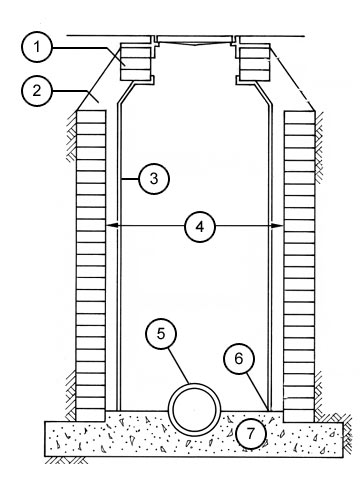 Zur Schachtauskleidung mit vorgefertigten Rohren (Abschnitt 5.3.2.2.2) werden i.a. Rohre aus Kunststoffen (Abschnitt 1.7.4) , Polymerbeton (Abschnitt 1.7.8) , Faserzement (Abschnitt 1.7.9) oder Beton- und Stahlbeton mit integriertem Korrosionsschutz (Abschnitt 1.7.7.3) verwendet.