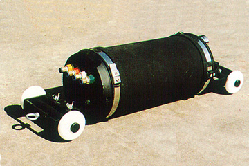 - Einfahren und Einbau der Innenmanschette mit Hilfe eines Packers (Image 5.2.3.2.3.3-4) und einer Kanalfernsehkamera. Nach dem Positionieren der Manschette wird diese durch Aufblasen des Packers mit Druckluft bis zum Einrasten der Schnapp-Verbindung aufgeweitet. Eine Druckkontrolleinrichtung verhindert das Überspannen der Innenmanschette.