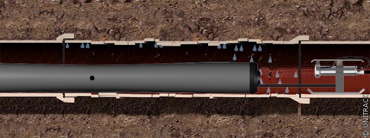 Ziel der Injektion im Rohrschaft- oder Haltungsbereich ist die Wiederherstellung der Wasserdichtheit und der statischen Tragfähigkeit beschädigter Rohr - oder Haltungsabschnitte auch unter Einbeziehung der Leitungszone.