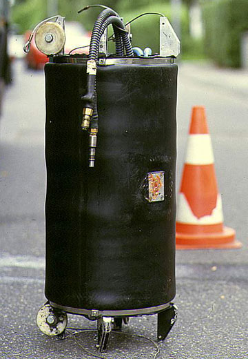 Zur Verhinderung von Beschädigungen der Gummimanschetten sind die kleineren Packer mit Gleitkufen und die größeren mit Rollen ausgerüstet.