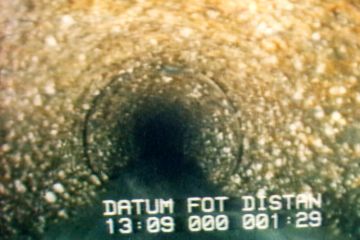 Korrosion der gesamten Rohrinnenfläche eines Betonkanals - Kamerabild [FI-IfK] |