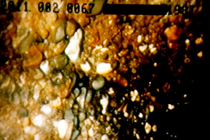 Typisch für den lösenden Angriff ist das "waschbetonartige" Aussehen der Betonoberfläche (Image 2.6.3.1.1-3) .