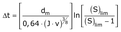 Mit dem Wert für (S)lim läßt sich die Länge des Kanalabschnitts errechnen, ab der mit dem Auftreten von 1 mg S/l im Abwasser und damit mit dem Beginn einer Biogenen Schwefelsäure-Korrosion zu rechnen ist [Schre90] .