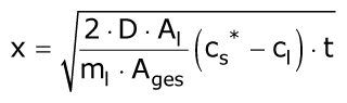 Mit diesen Ausgangsgrößen läßt sich die Dicke x der entfestigten Schicht (Angriffstiefe) in Abhängigkeit von der Zeit t näherungsweise als quasi stationäre Diffusion berechnen [Grube87] :