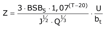 Für Kanäle, bei denen anfangs noch keine Sulfide im Abwasser vorhanden sind, kann die Sulfidbildung pro Stunde nach (Formel 2.6.3.2.3) von Pomeroy und Parkhurst [Pomer74] [Pomer77] ermittelt werden.
