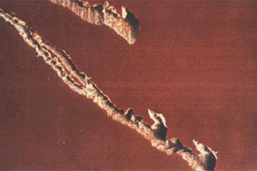Beim unsachgemäßen Einsatz des Hochdruckspülverfahrens können Rohrschäden in Form von Riefen, Abplatzungen, Rissen oder Löchern in Rohrwandungen und Rohrauskleidungen (Abschnitt 2.1) auftreten (Image 3.2.3.1-1) (Image 3.2.3.1-2) .